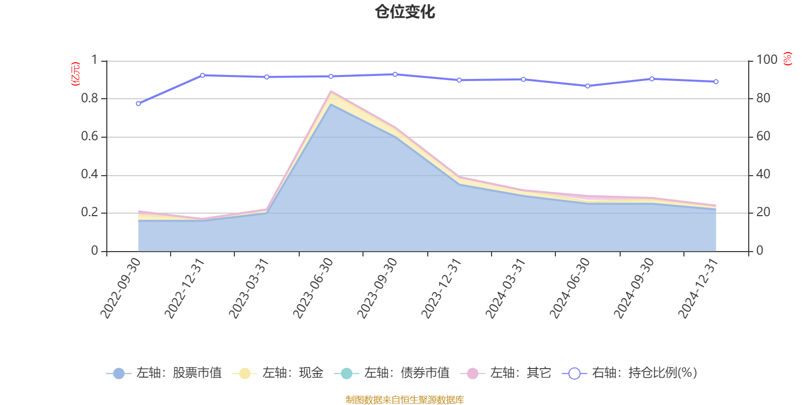 据定期报告数据统计,成立以来平均股票仓位为89.24%,同类平均为83.32%。2023年三季度末基金达到92.87%的最高仓位,2022年三季度末最低,为77.53%。
