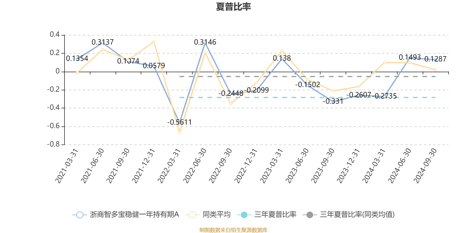 截至9月30日,基金近三年夏普比率为-0.2845,位于同类可比基金342/465。